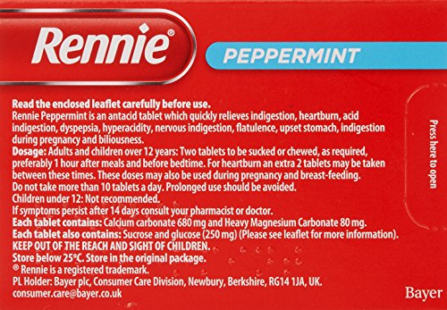 Studio : Rennie Publisher : Rennie Binding : Health and Beauty Product Description Rennie relieves acid indigestion, heartburn, nervous indigestion, acidity, flatulence, upset stomach, dyspepsia, or billiousness With a smooth fresh taste Caution: Keep out of the reach of children If symptoms persist, consult your doctor Store below 25ºC 0