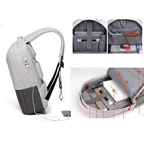 Description: External USB interface design,comes with a USB data cable for easy charging. Dual computer compartment: can accommodate 15.6-inch computer and Ipad,Multi pockets for iPhone,pen, keys, wallet, books, clothes, bottle and more, keeping all your stuff organized and you never worry about your stuff will be cluttered inside. Wear-resistant, water repellent fabric, fine polyester fabric, feel thick, high density, wet by the rain, you can immediately wipe. S-type decompression shoulder strap design, ergonomic, to create a comfortable experience. Business casual style, owner of high-end fashion atmosphere.