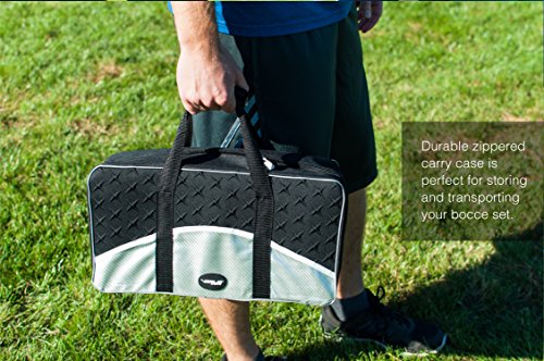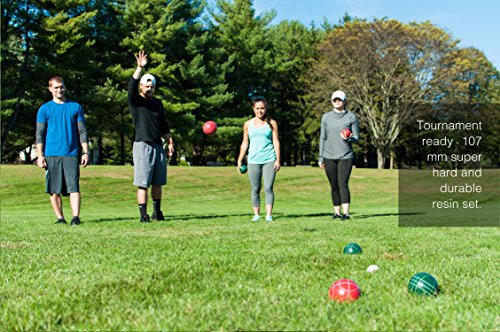 This high quality Expert 107 mm Bocce Set from DMI Sports is designed for serious players. This internationally popular game is similar to lawn bowling. Set includes 8 official tournament size resin balls in red and green with two different scoring patterns and one Jack / Pallino one piece 60 mm diameter ball. Take it with you anywhere with the heavy duty deluxe carry bag.Feature