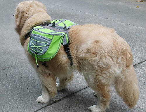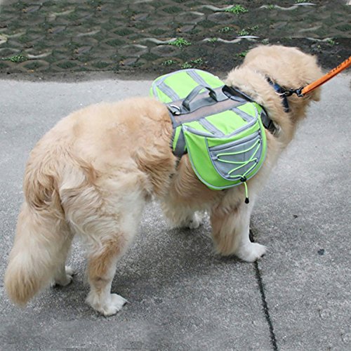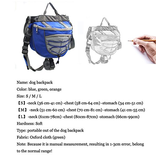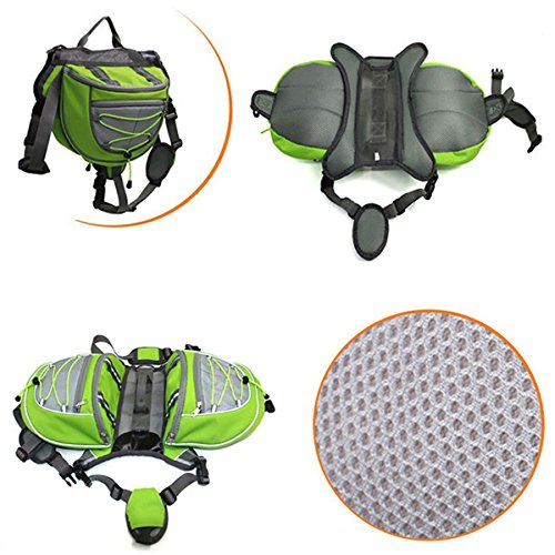 -. Feature : Color: Green, Material: Polyester fiber,Weight:440g / S- Neck:36-41cm/14.1-16.1",Chest:58-64cm/22.8-25.1",Stomach:34-51cm/13.3-20" / High quality: Made of Polyester fiber high-grade,strong and durable.and PU mesh in the middle is breathable and cooling, bring your loved dog comfortable feelings. / Chest and back circumference are adjustable,each sides one convenient pocket provide room for your own disposable dog food, water bottle, house keys, and cell phone. / Perfect for walking,shopping ,hiking and jogging, and great for you and your pet wherever you go.