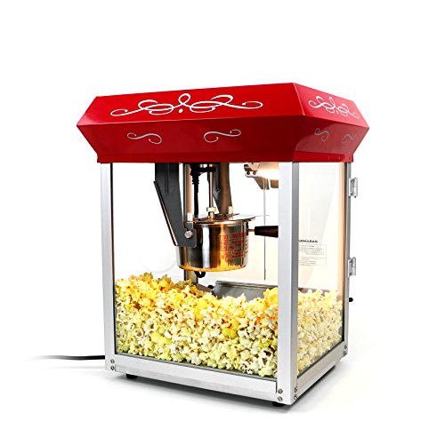 -. Feature : UPGRADED 6oz Hot-Oil Popcorn Machine with Flexible Capacity for use with 2.5oz, 4oz, or 6oz Popcorn Ingredient Packets [Paramount Popcorn Packets Recommended] / NEW! Fast & Easy-Clean Kettle with Easy-to-Remove Kettle Stirrer & Lid (No Tools Needed) / NEW! Fast & Easy Machine Cleanup with Easy-to-Remove Kettle Support Brackets (No Tools Needed) / NEW! Multicolor LED Illumination w/Remote Control (Standard Warming Bulb also Included) / ALSO INCLUDES: Large Popcorn Tub, Popcorn Serving Bags, Popcorn Scoop, Heated Warming Deck, Dual Glass Doors, Four Control Switches for Ultimate Machine Operation, & More! (See full description below). Includes everything needed but the ingredients!