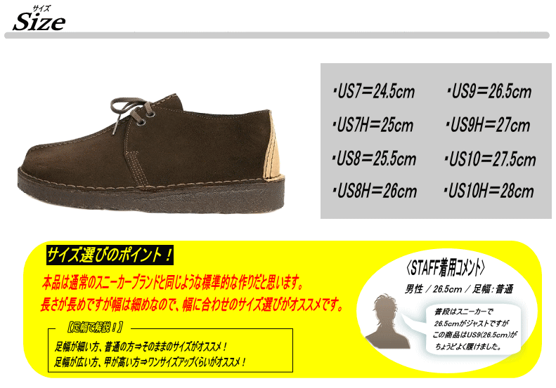 | サイズ | 作り⇒標準 【サイズ選びのポイント!】 足幅が細い方、普通の方⇒そのままのサイズがオススメ! 足幅が広い方、甲が高い方⇒ワンサイズアップくらいがオススメ! |