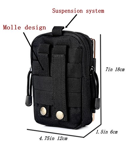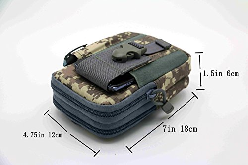 -. Feature : Made of high quality 600D Nylon.Package included: 1 x Compact EDC pouch (Accessories are not included)1 x Aluminum Alloy Carabiner Screw Lock D-ring / Amazon FBA is the only way we are selling our product. size: 18 x 12 x 4 cm, approx. 7 x 4.75 x 1.5 inches (L x W x T ) / The straps can be threaded through the loops on the back for a tight fit on the belt or any combination of wear options and belt sizes. There's a loop on top. / Huge Space to Store: for cell phone (iphone 6 6 plus 7 7 plus 6S 6S Plus Samsung Note 5),keychain, passport, knife, GPS device, digital cameras,money,card,key, first aid kit. / The surface of the Utility Gadget Pouch is not easy to stick dust, stains, easy to take care.The quick release buckle closure makes it easy to put in and take out the phone. Zippers are ended up with tail clips, which is convenient for use.