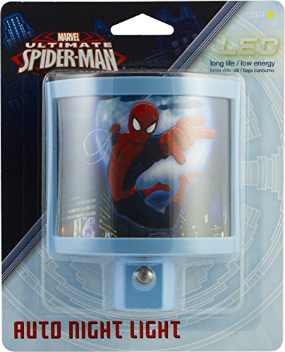 GE 13377 Marvel Ultimate Spider-Man Light-Sensing LED Night Light, Red/Blue