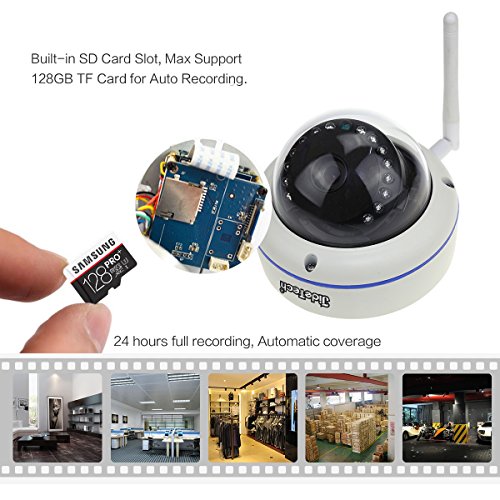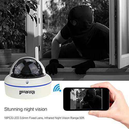 - Night Vision & Motion Detection: 18PCS LED 3.6mm Fixed Lens, Infrared Night Vision Range 50ft. Email and FTP alerts by text information. Built-in SD Card Slot, Max Support 128GB TF Card for Auto Recording.