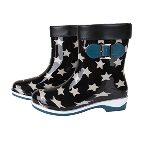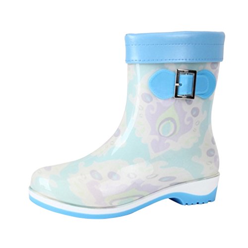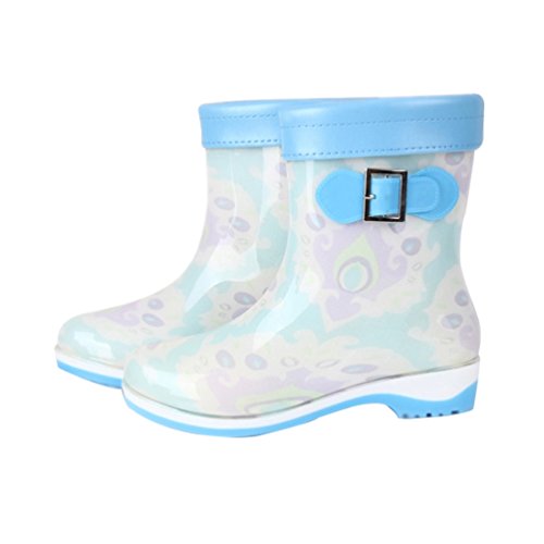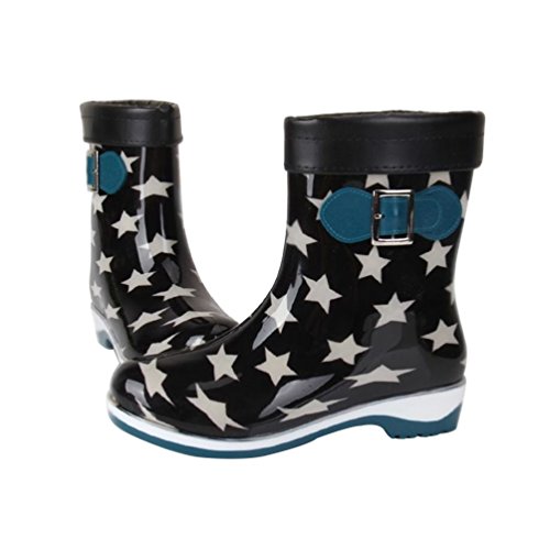 YoungSoul Women's Short Wellies Slip On Printed Waterproof Rubber Rain Boots Upper material: PVC Shoe Material: Raw Rubber Heel Height: about 2 cm Size Chart US 5 - Asian 36: Foot Length 8.66" US 5.5-Asian 37: Foot Length 8.86" US 6 - Asian 38: Foot Length 9.05" US 6.5-Asian 39: Foot Length 9.25" US 7 - Asian 40: Foot Length 9.45" YoungSoul is a company which provide high quality products with reasonable price to customer. No matter any reason you unsatisfied, please contact us firstly before leave feedback, we assure you Satisfactory solution. YoungSoul Wish You Have a Great Day.