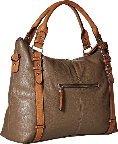 Rolled carry handles and a removable crossbody strap.