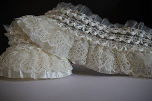 2Yards Off White Lace Gathered Elastic Pleated Satin Ribbon Trim (Beige / cream white)