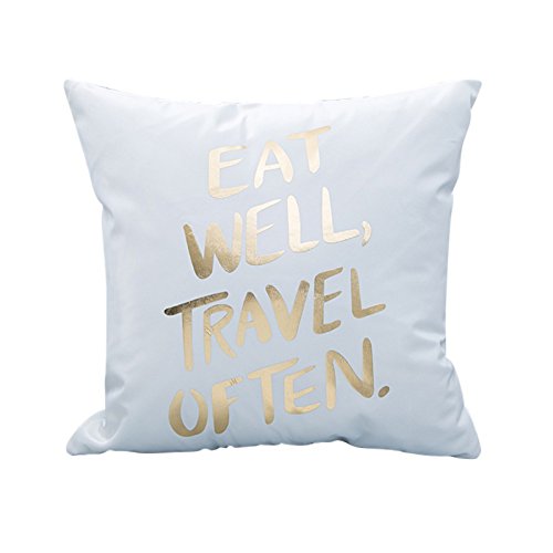 Dyg Smart Hight Quality Super Soft Bronzing Gold Pillow Eat Well, Travel Often. Pillowcase Cotton Linen Printed