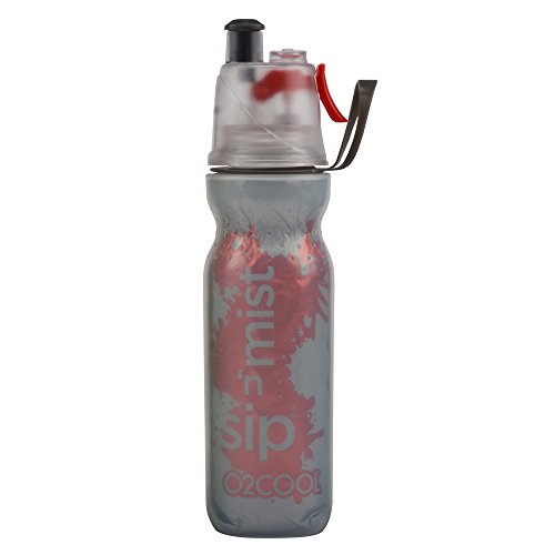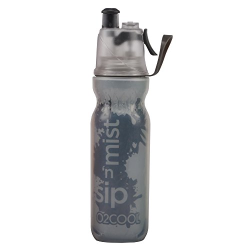 O2Cool Double Wall Mist 'N Sip Water Bottle, Grey with Black Splash