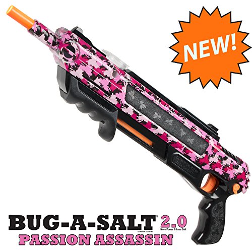 SALT HAS NEVER BEEN SO SWEET. THE BUG-A-SALT PASSION ASSASSIN 2.0 IS THE MOST POWERFUL, EFFICIENT BUG-A-SALT DESIGNED YET. THE BUG-A-SALT SHOOTS A SHOTGUN SPRAY OF REGULAR TABLE SALT AND DECIMATES FLIES ON CONTACT. A SUREFIRE FUN WAY TO ENJOY A DISGUSTING TASK. RID YOUR HOUSE OF ALL THOSE PESKY PESTS AND HAVE A BLAST WHILE DOING IT. INCLUDES 90 DAY WARRANTY WITH PROOF OF PURCHASE.Feature