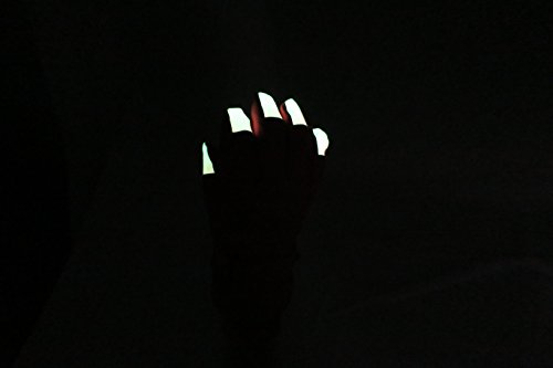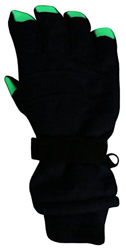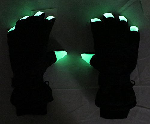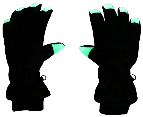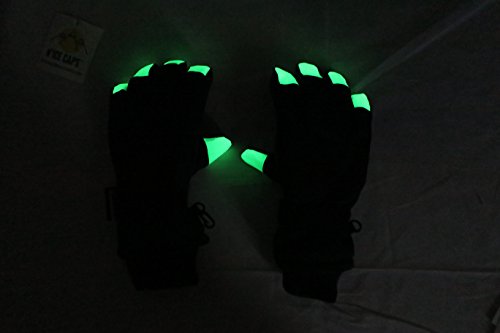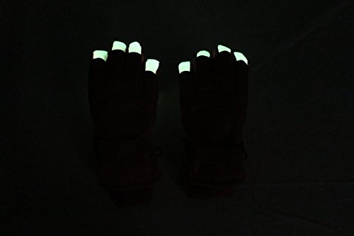 Binding : Apparel Product Description N'Ice Caps Kids Glow in the Dark Fingertip Thinsulate Waterproof Winter Gloves. Fingertips glows in the dark! FOR BEST RESULTS, PLACE GLOVES IN BRIGHT LIT ROOM OR UNDER LIGHT FIXTURE PRIOR TO USE, THE BRIGHT LIGHT CHARGES IT UP. Gloves have Thinsulate and waterproof lining, great for cold temperatures and playing in the snow. Full PVC sure gripper on palms, fingers and thumbs to provide extra grip for outdoors activities. Gloves have elastic under glove wrists for easy-on wear, and knit cuffs. Size recommendations and product dimensions (Dimensions: Length is measured from the elastic along the wrist of the glove to the end of the middle glove finger; Width is measured across the palm area of the glove at the widest point) : 4-5 Years (5.5" length, 3.5" width); 5-6 Years (5.75" length, 3.75" width); 6-8 Years (6.0" length, 4.0" width), 8-10 Years (6.5" length, 4.25" width), 10-12 Years (6.75" length, 4.35" width), 13-15 Years (7.0" length, 4.5" length). Tested and approved per CPSIA standards. 0