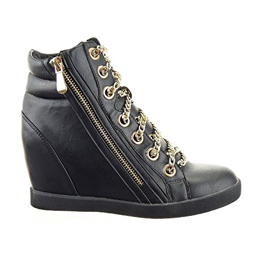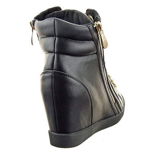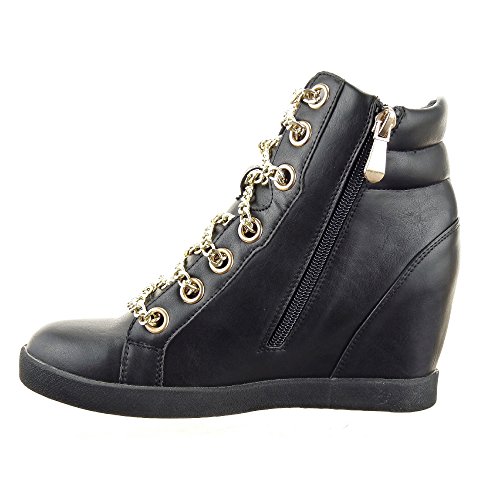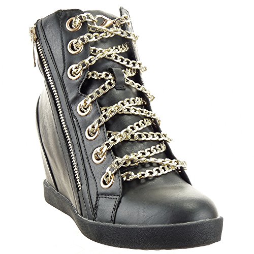-. Title : Sopily - damen Mode Schuhe Sneaker Keilabsatz Hohe Kette Reißverschluss - Schwarz
