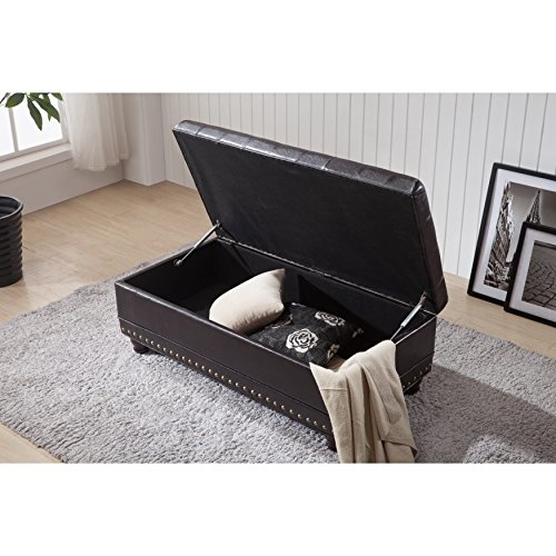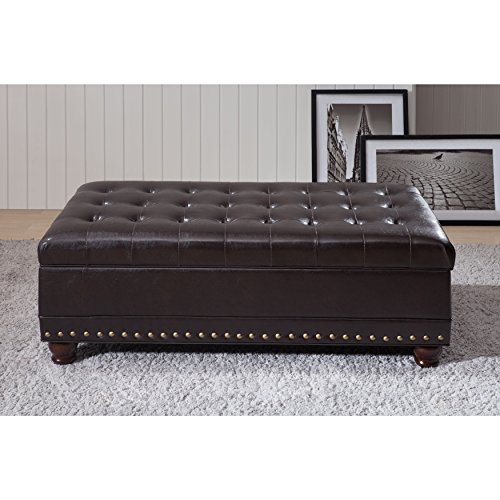 -. Title : VisionXPro, Inc. Royal Comfort Collection Luxury Dark Brown Tufted Storage Bench Nailhead Trim Ottoman