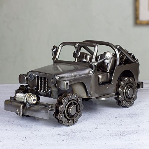 NOVICA Metallic Decorative Recycled Metal Sculpture, 5" Tall, 'Rustic Off-Road Jeep'