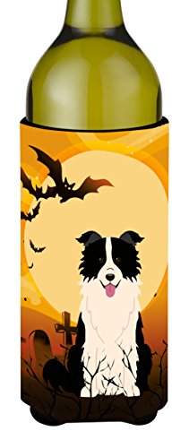 Caroline's Treasures BB4384LITERK Halloween Border Collie Black White Wine Bottle Beverage Insulator Hugger, 750ml, Multicolor