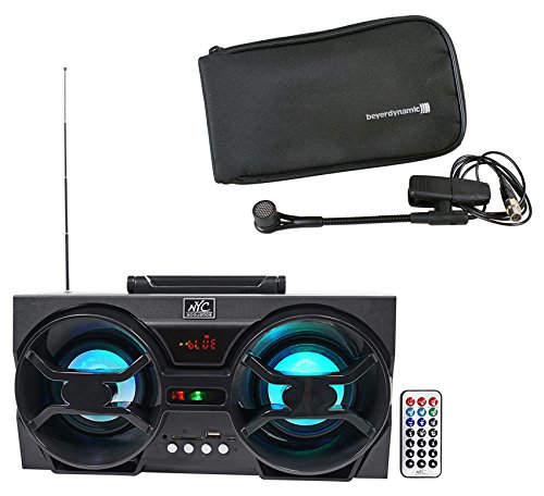 -. Feature : Beyerdynamic TG-I57C Clip-On Condenser Microphone For Wind Instruments. Optimally positioned treble resonator for improved high-range reproduction. 2nd treble resonator within the system. Special sound holes for a frequency-independent polar pattern. Transducer type Electret condenser. Polar pattern microphone Cardioid. Microphone frequency response 30 - 20,000 Hz / To pick up sound from brass instruments such as saxophones, trumpets, trombones or horns, a microphone really has to function at a high level, a requirement where the TG I 57c premium clip-on condenser microphone succeeds with flying colors. It can operate at extremely high maximum sound levels and reliably suppresses unwanted noise as a result of its cardioid polar pattern. / NYC Acoustics Dual 4" 30 Watt Bluetooth Boombox Speaker w/LED Lights, USB, SD. 30 watts Peak power. 10 watts RMS power. Battery charges with included USB cable. Mini USB auxiliary input with included cable to connect smartphones or MP3 players. Built-in AM/FM radio tuner with antenna for amazing reception. 1200 mAH battery supports up to 6 hours of playback! LED on each woofer that blinks to the beat of the music. / Playback time at normal volume: 5 - 6 hours. Playback time at high volume: 3 - 4 hours . Charge time: 3-4 Hours. Extremely loud, powerful, and compact . Perfect for camping, beach, bedroom, kitchen and many other applications. Bluetooth version. 2.1 with EDR (Enhanced Data Rate). A2DP Bluetooth audio streaming 33 foot max Bluetooth range. Automatically remembers and syncs with previously synced devices. / This speaker has Bluetooth 2.1 technology with enhanced data rate and a range of 33 feet! This guarantees a crystal clear signal even when you are far away from the unit. Pairing your phone or other Bluetooth enabled device is super easy! There is no password required. In addition to Bluetooth; the NPB3 features USB/SD playback and you can use the included cable and listen to any devices with a standard 3.5MM headphone jack such as a smartphone or MP3 player.