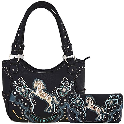 Western Style Horse Laser Cut Totes Purse Concealed Carry Handbag Women Country Shoulder Bag Wallet Set