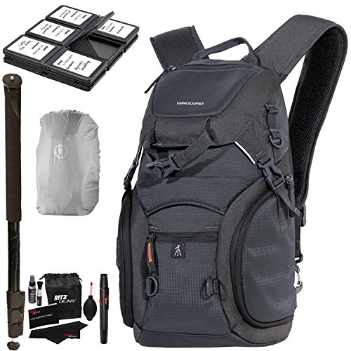 VANGUARD ADAPTOR 45 Camera Daypack, Rain Bag Cover, SD/SDHC Memory Card Hard Plastic Case, Ritz Gear Cleaning Kit, 72" Heavy Duty Monopod
