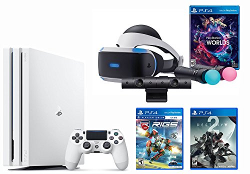 Includes: VR headset, Processor unit, VR headset connection cable, HDMI cable, USB cable, Stereo headphones, AC power cord, AC adaptor, PlayStation VR Demo Disc, PlayStation Camera, 2 PlayStation Move motion controllers,PlayStation VR Worlds Game Disc and Sony PlayStation 4 Pro 1TB Console - Destiny 2 Bundle and PSVR Game Disc RIGS Mechanized Combat League