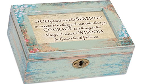God Grant Me Serenity Prayer Distressed Wood Jewelry Music Box Plays Tune We Have a Friend in Jesus