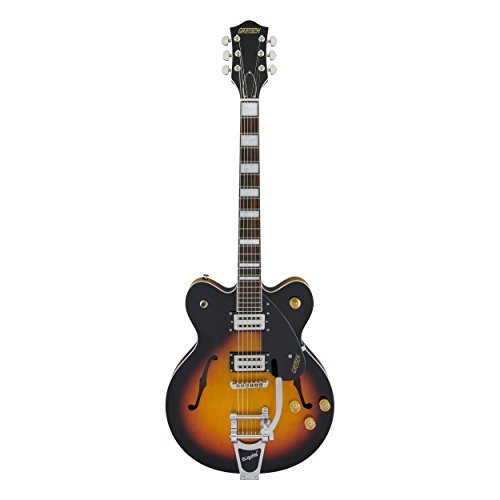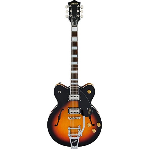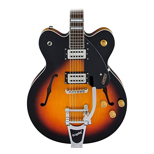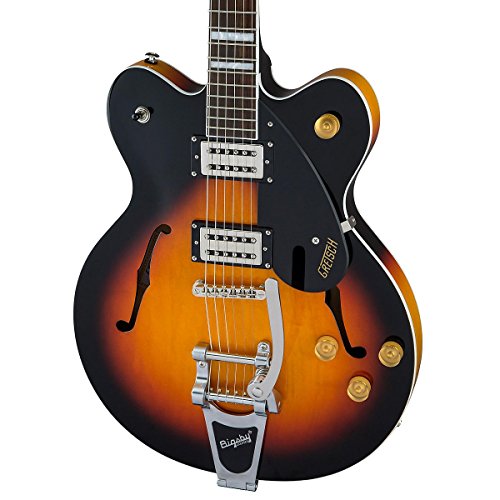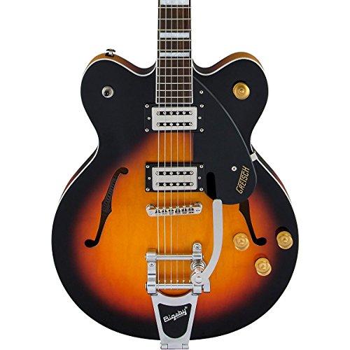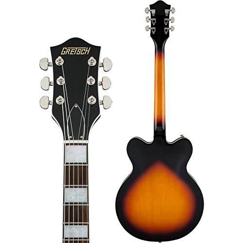 Studio : Gretsch Publisher : Gretsch Product Description Revitalizing the best elements from the past, the G2622T Streamliner Center Block Double Cutaway with Bigsby bursts into the modern music era with powerful sound and style. Brash and feedback-resistant, the sleek G2622T is designed for the guitarist who demands more than the mundane from an instrument-more performance, more style and most importantly, more volume-while retaining all you expect from a Gretsch.The secret to the Streamliner's sound is twofold-the Broad'Tron humbucking pickup and the spruce center block. Specifically designed by the expert engineers at Gretsch for the Streamliner, this high-output pickup spawns robust lows, pristine highs and a throaty midrange for a unique tone that blends well with other instruments in a band context. A lightweight spruce center block runs the length of the body, reinforcing the top while eliminating undesired feedback for volume-friendly performance on rocking stages. The Streamliner's sonic power is harnessed and shaped by the traditional control layout-neck and bridge pickup volume controls, a master tone control, master volume control and three-way pickup switching. A fast-playing 12"-radius rosewood fingerboard with elegant pearloid block inlays and 22 medium jumbo frets sits atop the white-bound nato neck with a thin "U"-shaped profile-ideal for chord work or fiery riffing. Add some shimmer and expression to your playing with the Bigsby-licensed B70 vibrato tailpiece while the Adjusto-maticTM bridge with anchored base and synthetic bone nut grant astounding tuning stability and accurate, slip-free intonation.All the classic eye-catching style you've come to expect from Gretsch is here-vintage-style gold control knobs, F Holes, elegant two-ply white and black body binding, slick-looking nickel hardware, single-ply black pickguard with Gretsch logo and arched laminated maple construction. 0