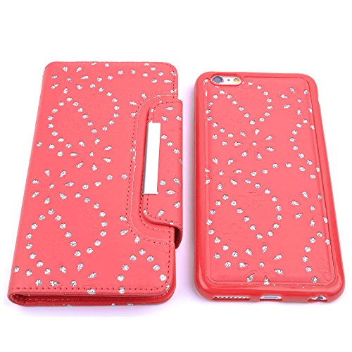 iPhone 6 Plus Case, iPhone 6S Plus Wallet, HESPLUS Bling Sparkle PU leather Flip Folio [Detachable] Wallet Cover Magnetic with Card Slot Holder for iPhone 6 Plus / iPhone 6S Plus 5.5 Inch - Red