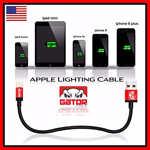 Gator Cable 3 feet MFI Apple Lightning high speed USB syncing and charging cord adapter with Red Aluminum Rugged Durable Housing For Apple iPhone ipad air pro 6 Plus 6 5 5s