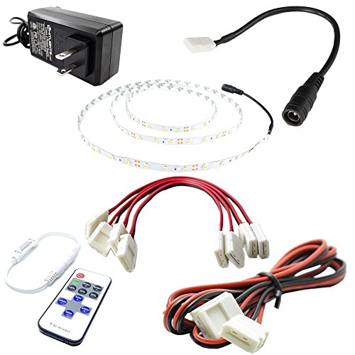 - EVERYTHING YOU NEED including 16.4 feet (300 3528 LEDs) of LED light strip, a compact 12V DC power supply transformer, a 12V remote dimmer, and a selection of solderless connectors - so you can select the amount of light appropriate for your application.