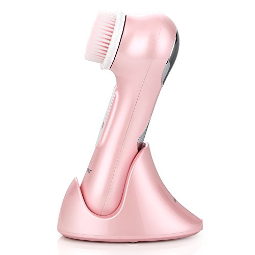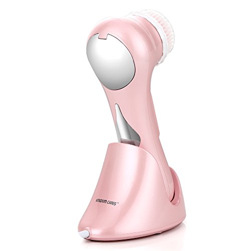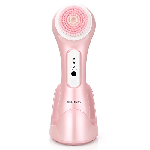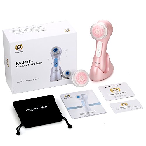 KINGDOMCARES Ultrasonic Waterproof Facial Cleansing Brush Rechargeable Exfoliating Microdermabrasion Face Brush Deep Cleaning Skin and Body Scrubbing Facial Massager with 3 Speeds 2 Brush Heads Pink