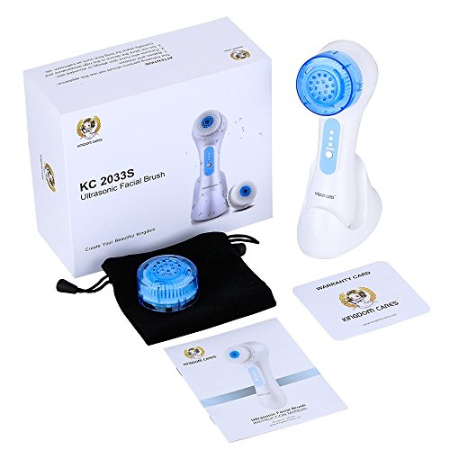 KINGDOMCARES Ultrasonic Waterproof Facial Cleansing Brush Rechargeable Exfoliating Microdermabrasion Face Brush Deep Cleaning Skin and Body Scrubbing Facial Massager with 3 Speeds 2 Brush Heads White