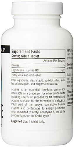 -. Title : Source Naturals L-Lysine Essential Free-Form Amino Acid 1000mg - 100 Tablets