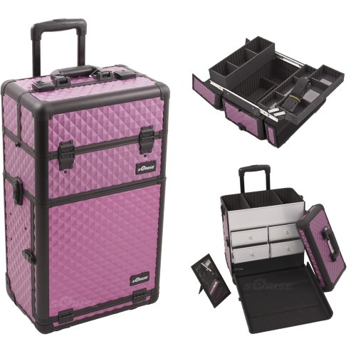 Sunrise I3262DMPLB Purple Diamond Professional Rolling Aluminum Cosmetic Makeup Craft Storage Organizer Case with Split Drawers and Easy Slide and Extendable Trays with Dividers