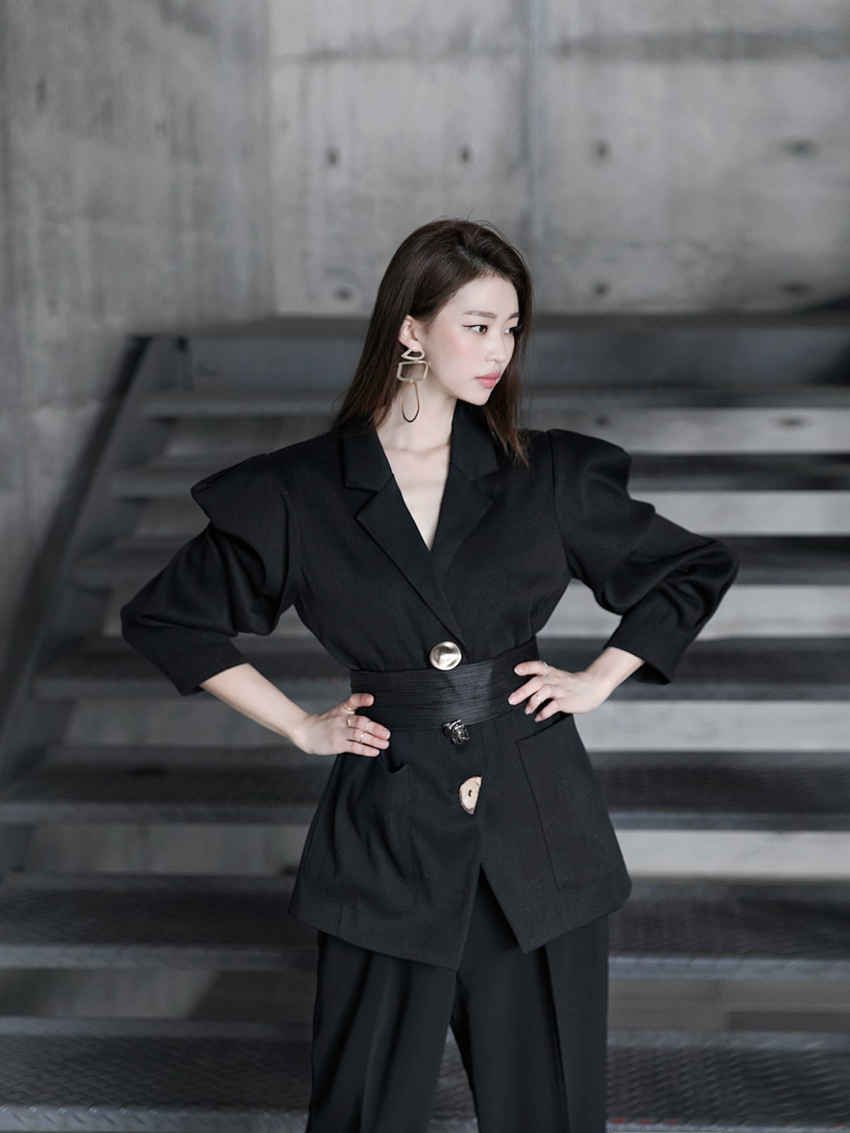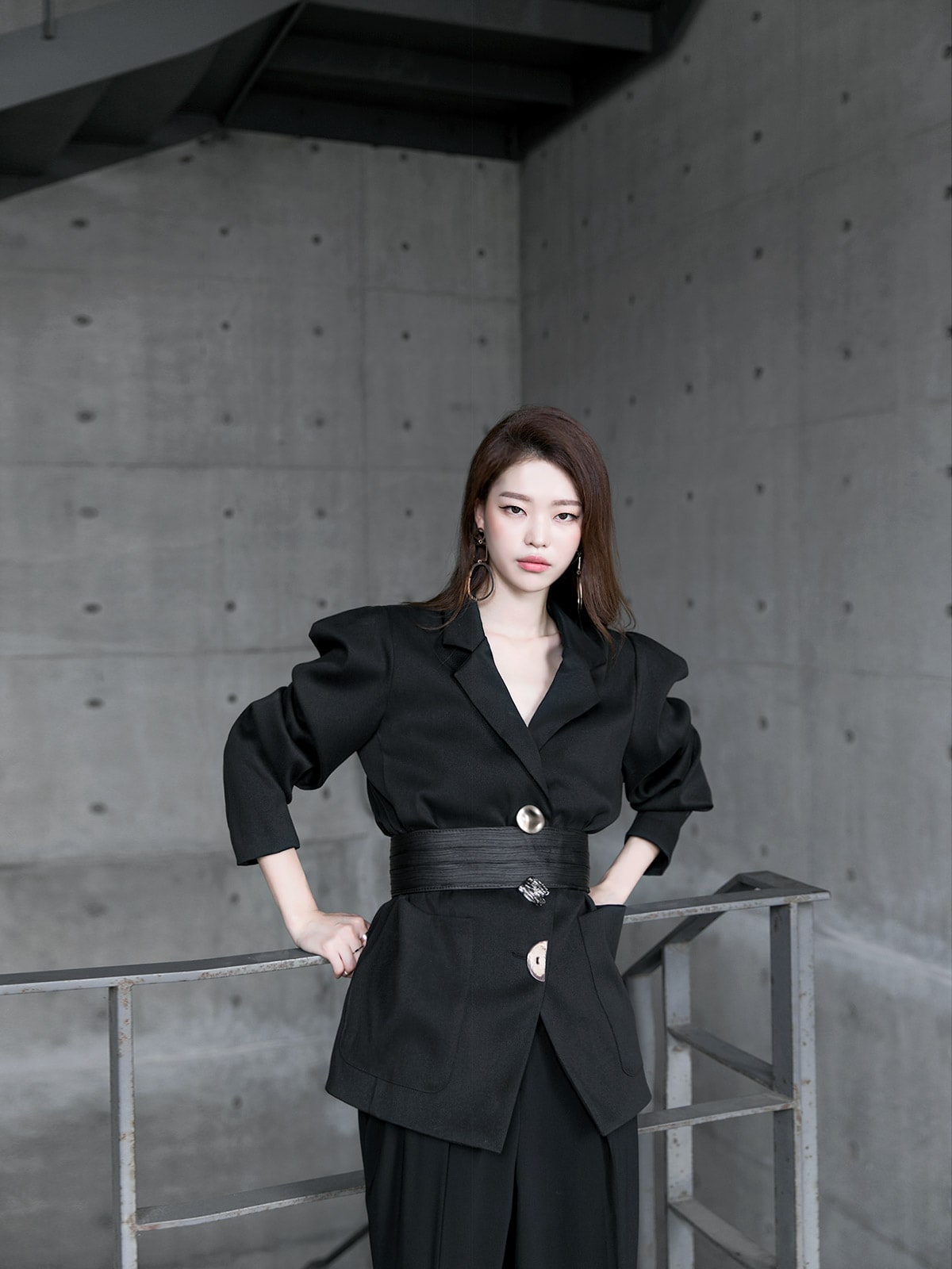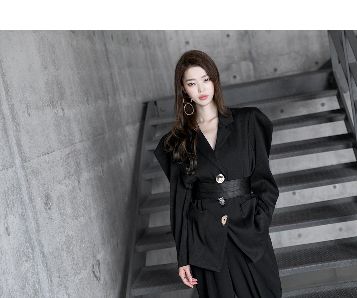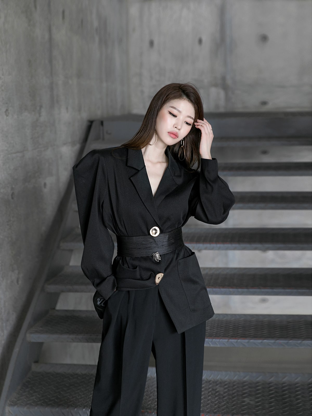J-9006 유리아 버튼 포인트 자켓(벨트set) Black
