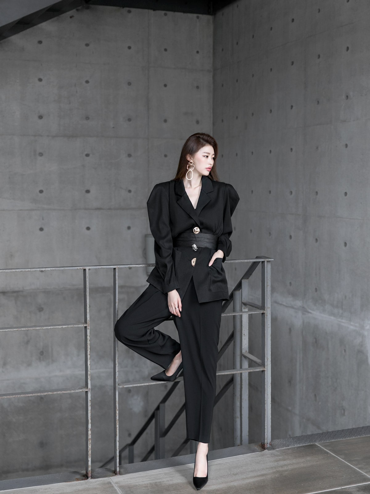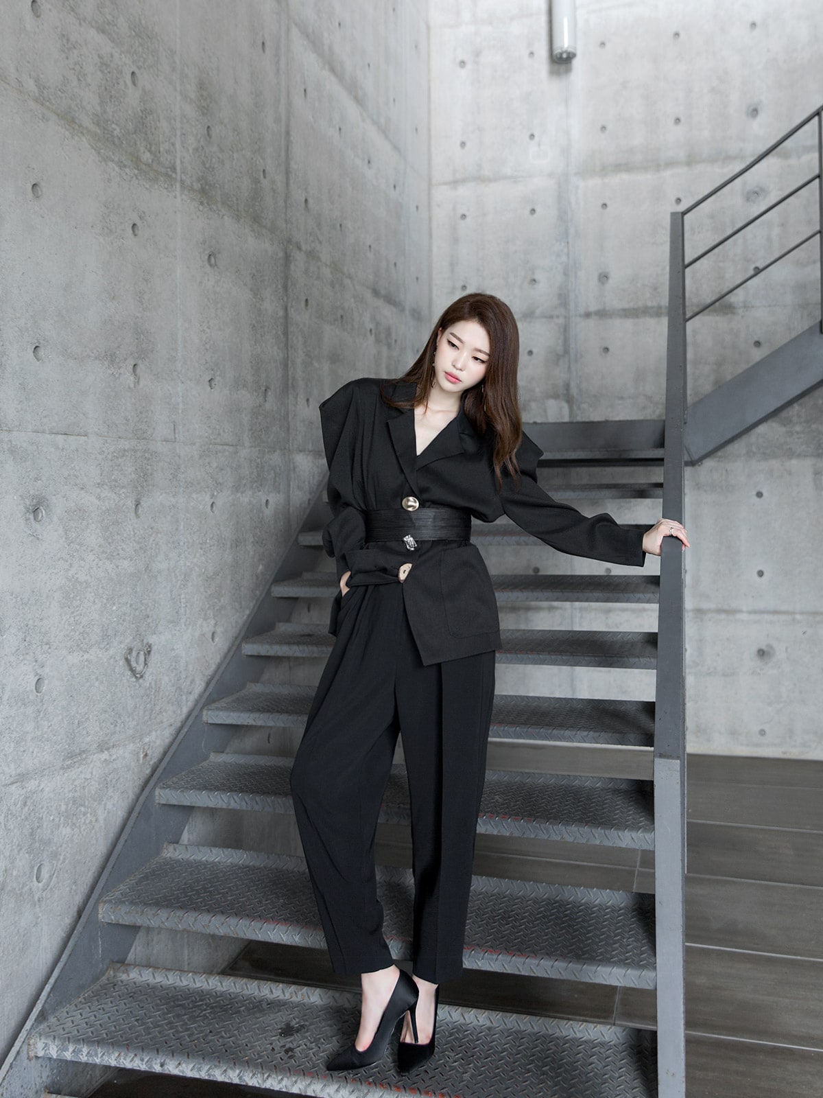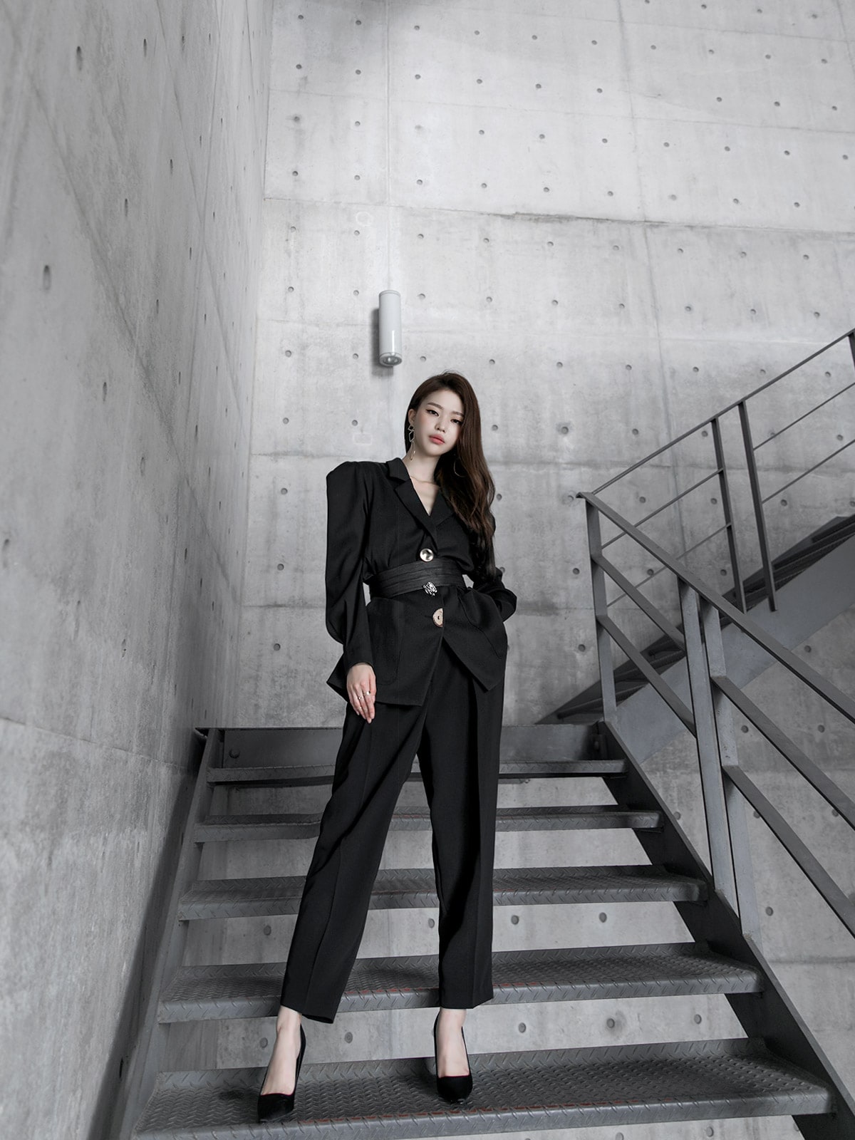 J-9006 유리아 버튼 포인트 자켓(벨트set) Black