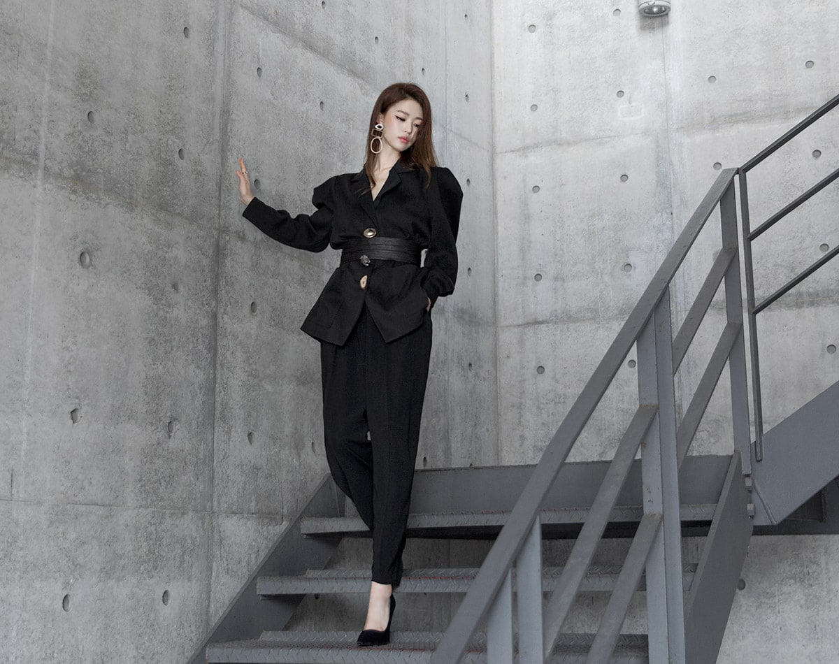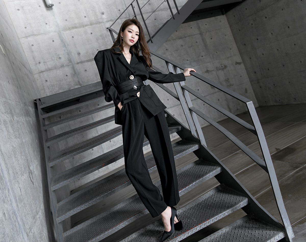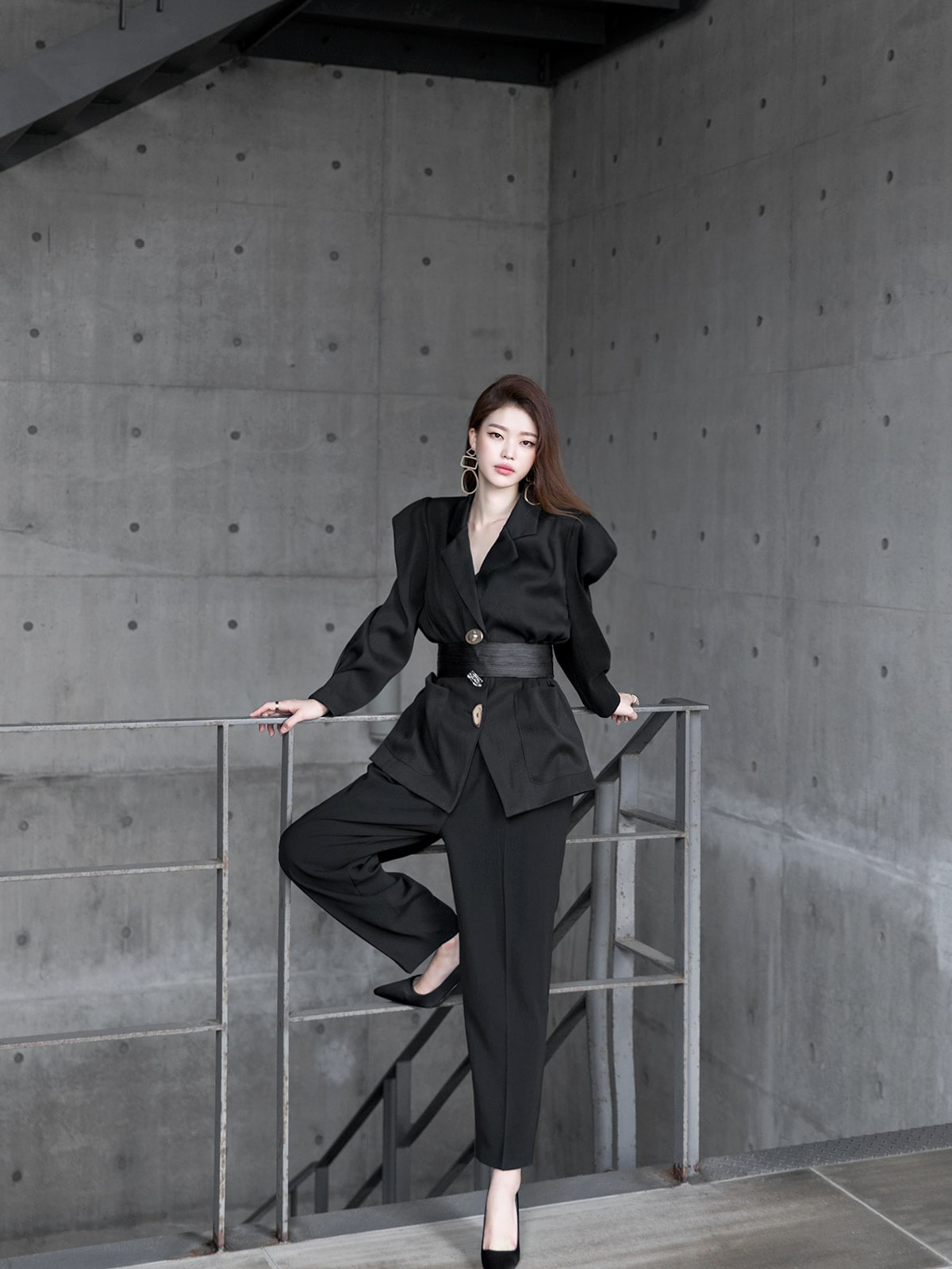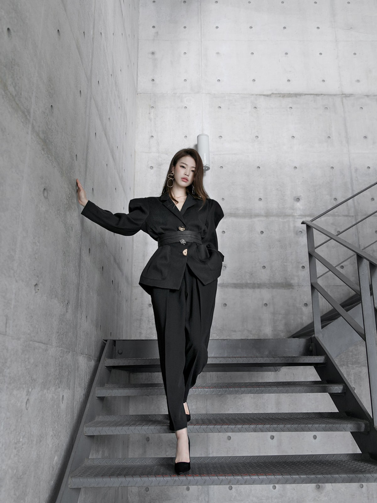 J-9006 유리아 버튼 포인트 자켓(벨트set) Black
