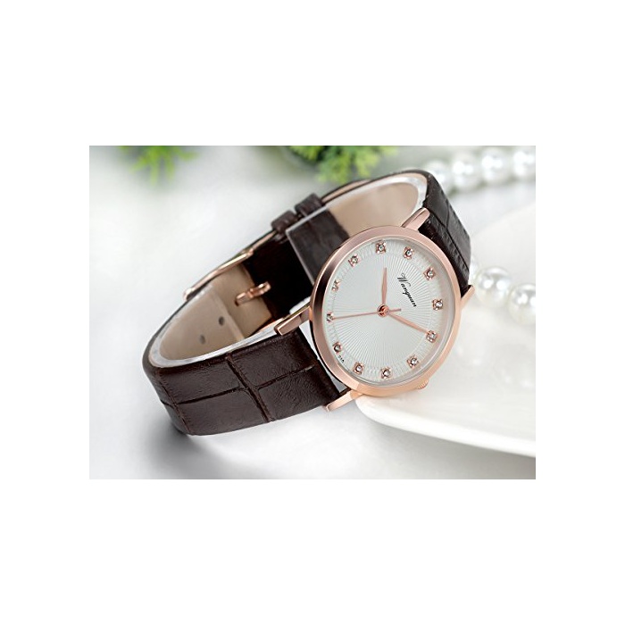 JewelryWe 발렌타인 데이 사랑의 증명에:클래식 심플 레이디스 스탠다드 비지니스,로마숫자 앤틱 레트로 문자판,아날로그 표시 날짜 표시 쿼츠 손목시계,컬러:브라운