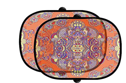 -. Title : Orange Floral 2 Pcs Auto Foldable Front Rear Side Window Sunshade Mesh