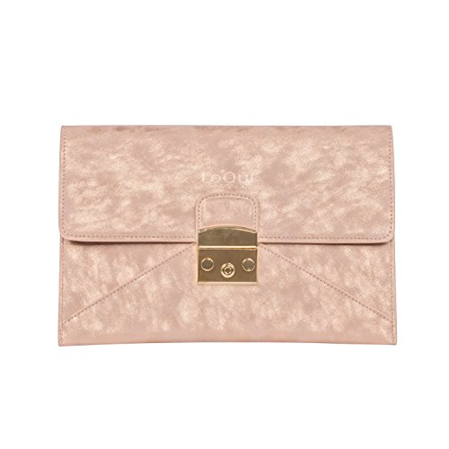 Upgrade your everyday or evening style with a sleek envelope clutch. Luxury gold plated hardware enhances the shimmering metallic finish. Blind emboss logo provides understated branding.