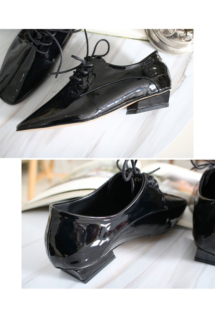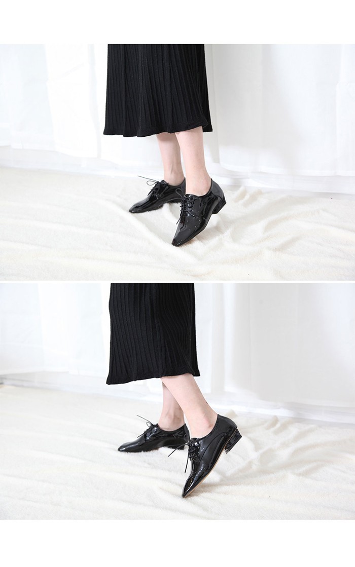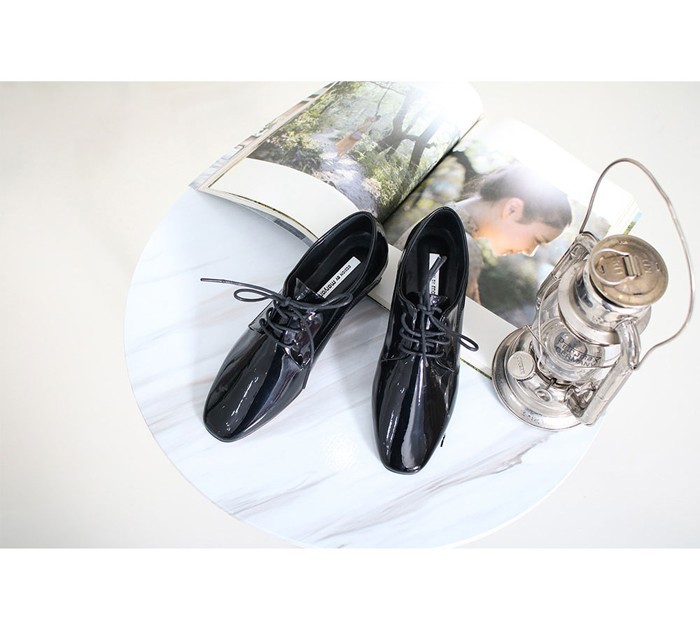 商品名:ローファー レディース エナメル調 ローヒール レースアップ 2017 秋 冬 ファッション 靴 婦人靴