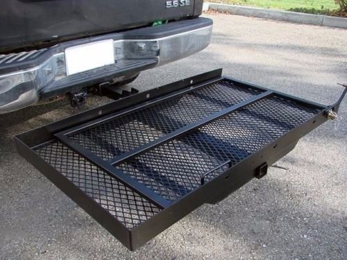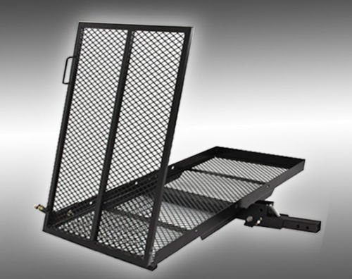 Has a 3 inch safety rail; Fits all 2" Receiver, hitch class III or IV; Folding ramp can also be locked flat when not in use