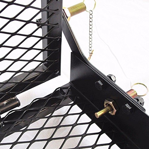 Heavy duty folding hitch makes our carrier more rigid and stronger; Folding ramp is easily locked upright with double
