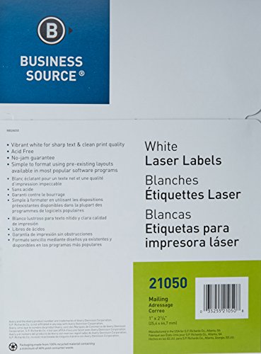 Business Source™ Mailing Laser Label, 1x2-5/8, 3000/PK, White