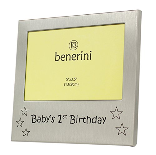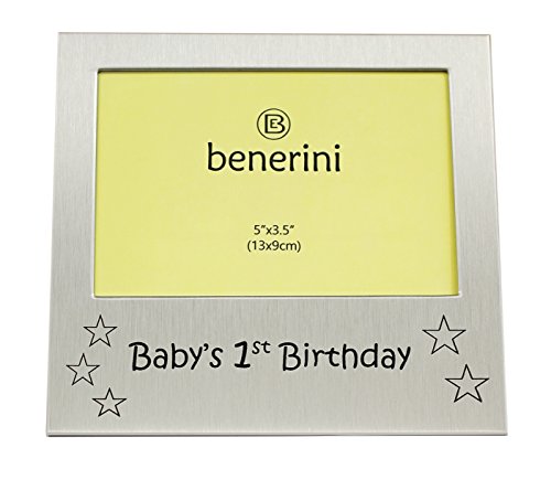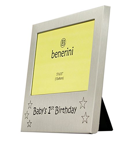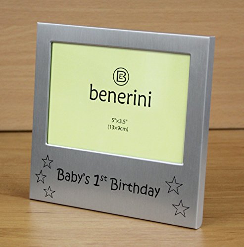 Baby's 1st Birthday - Photo Frame Gift - Photo Size 5 x 3.5 Inches (13 x 9 cm) - Brushed Aluminum Satin Silver Color.