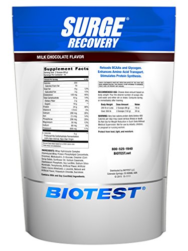 Studio : Biotest LLC Publisher : Biotest LLC Binding : Health and Beauty Product Description Surge® Recovery is designed to stimulate anabolism and jump-start recovery when it's absolutely most important for making gains - post workout. The formula stimulates a hormonal (primarily insulin) surge that drives high concentrations of certain nutrients, supplied by the drink, deep into the muscle cell. This will produce a cascade effect that stops catabolism and stimulates anabolism, big time! In fact, if you took everyone who's having a hard time making progress and just got them to consume ample amounts of the right mix of nutrients post workout, the vast majority would make consistent, continual muscle-mass gains. It's really that simple - and that hard. The hard part of effective post-workout nutrition is determining the right blend of nutrients in the ideal ratios. The good news is, Surge Recovery has taken the guesswork out of the equation. *These statements have not been evaluated by the Food and Drug Administration. 0