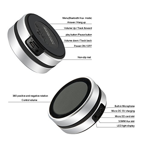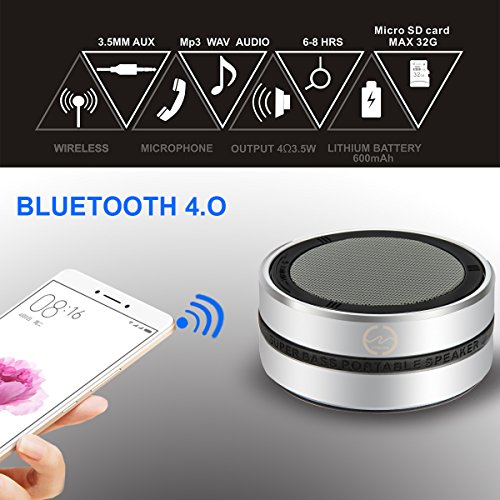 3.5W 600mAh Bluetooth 4.0 Speaker with Mic, 3.5mm Aux Line-in, Micro SD Card Support(Includes Line-in Cable).