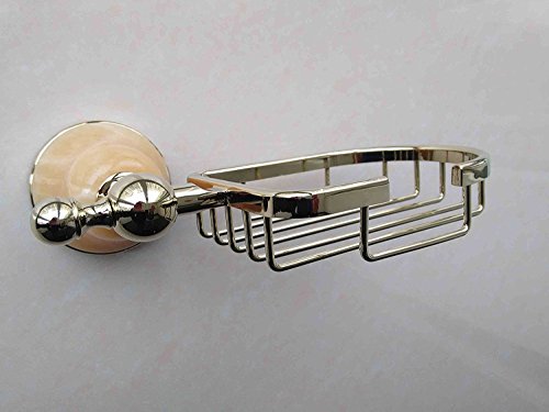 Realgoal RG8910 Bathroom Accessories Wall Mounted Soap Dishes Basket Holder, Noble Design Using Natual Jade Stone & Stainless Steel, Bath Soap Dish Rack Holder for Shower, Gold-plated
