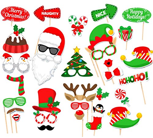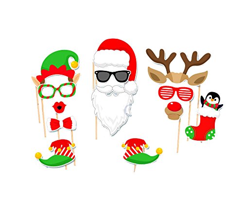 31 Pieces Christmas Eve Party Photo Booth Props Kit Include 31 colored Chritmas Eve photo booth props, 31 wooden dowel sticks and adhesives for assembly.