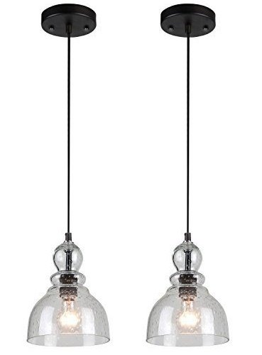 Westinghouse Industrial One-Light Adjustable Mini Pendant with Handblown Clear Seeded Glass, Oil Rubbed Bronze Finish (2 Pack)