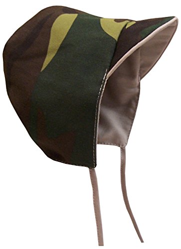 Binding : Apparel Product Description Sun Caps TM by N'Ice Caps baby boys bonnet. Great fabric composition, easy to wear, easy to wash. Available in 4 sizes for baby. One size fits Infant X-Small (recommended for 1-2 months.) One size fits Infant Small (recommended for 3-6 months.) One size fits Infant Medium (recommended for 6-12 months.) One size fits Infant Large (recommended for 12-18 months.) Colors: white solid, tan/navy reversible, olive/green camo print reversible. Designed in the USA. Tested and approved as per CPSIA standards. 0